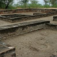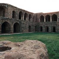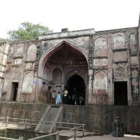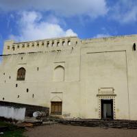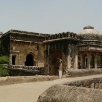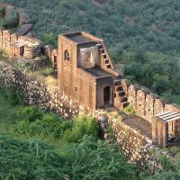 The Bhangarh Fort is located on the border of the Sariska Reserve in the Aravali range of hills in Alwar district of Rajasthan. The nearest village is Gola ka Baas. The fort is situated at the foot of the hills on sloping terrain. The ruins of the King's palace are located on the lower slope of the hills; trees surround the pond area and a natural stream falls into the pond within the premises of the palace.