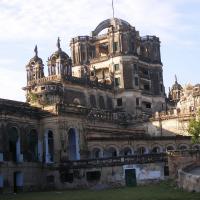The Bhangarh Fort is located on the border of the Sariska Reserve in the Aravali range of hills in Alwar district of Rajasthan. The nearest village is Gola ka Baas. The fort is situated at the foot of the hills on sloping terrain. The ruins of the King's palace are located on the lower slope of the hills; trees surround the pond area and a natural stream falls into the pond within the premises of the palace.