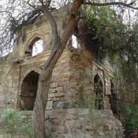The Bhangarh Fort is located on the border of the Sariska Reserve in the Aravali range of hills in Alwar district of Rajasthan. The nearest village is Gola ka Baas. The fort is situated at the foot of the hills on sloping terrain. The ruins of the King's palace are located on the lower slope of the hills; trees surround the pond area and a natural stream falls into the pond within the premises of the palace.